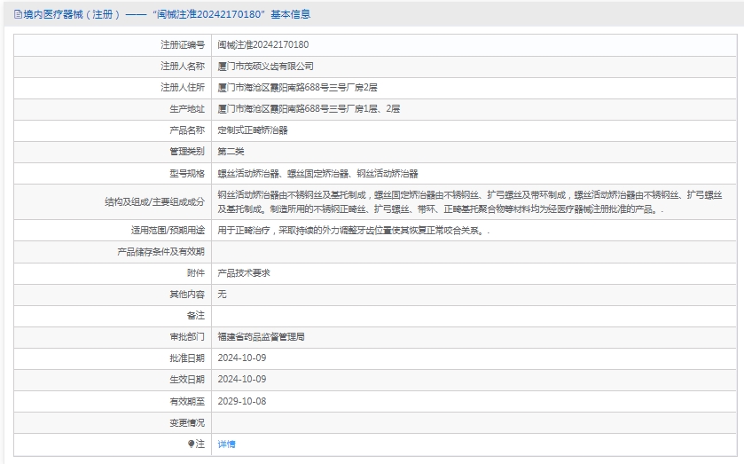 钢丝活动矫治器由不锈钢丝及基托制成,螺丝固定矫治器由不锈钢丝、扩弓螺丝及带环制成,螺丝活动矫治器由不锈钢丝、扩弓螺丝及基托制成。制造所用的不锈钢正畸丝、扩弓螺丝、带环、正畸基托聚合物等材料均为经医疗器械注册批准的产品。.