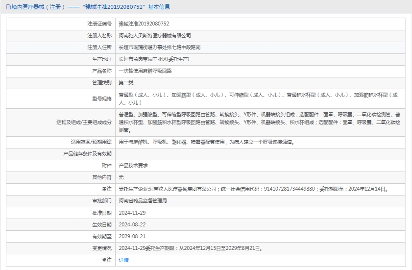 普通型、加强筋型、可伸缩型呼吸回路由管路、转换接头、Y形件、机器端接头组成;选配配件:面罩、呼吸囊、二氧化碳检测管。普通积水杯型、加强筋积水杯型呼吸回路由管路、转换接头、Y形件、机器端接头、积水杯组成;选配配件:面罩、呼吸囊、二氧化碳检测管。