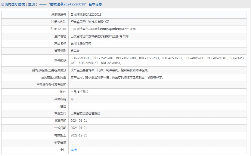 本产品用于提供低温冷冻环境,供医疗机构储存血液制品、试剂等样本。