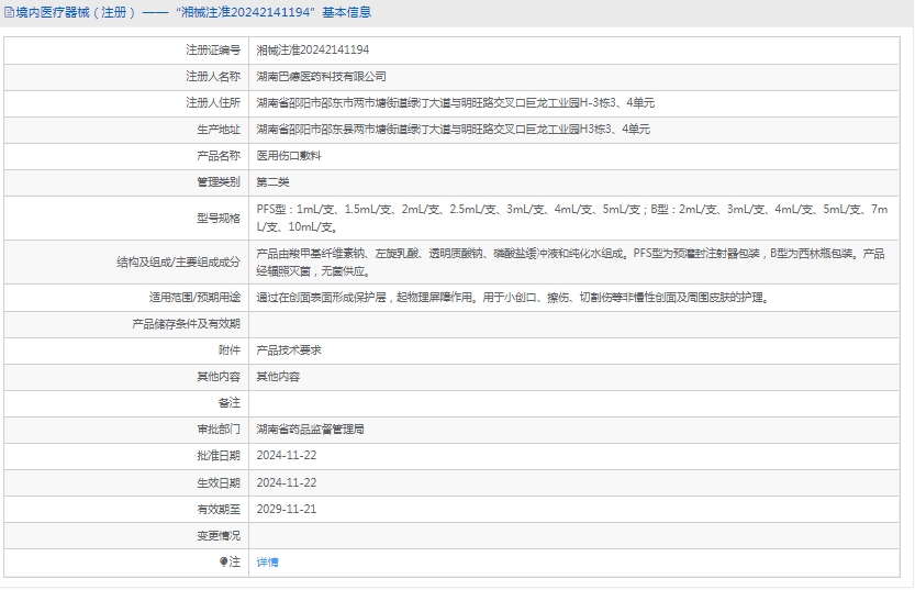 批准文号:湘械注准20242141194