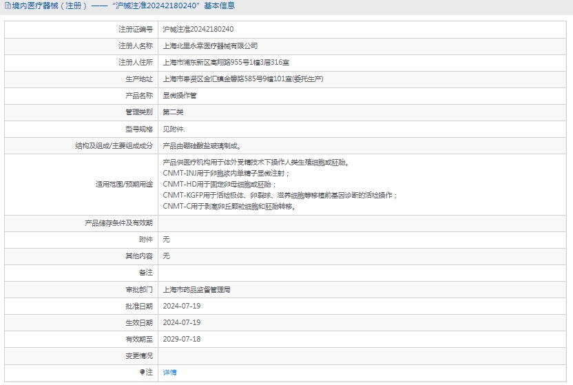 产品供医疗机构用于体外受精技术下操作人类生殖细胞或胚胎。