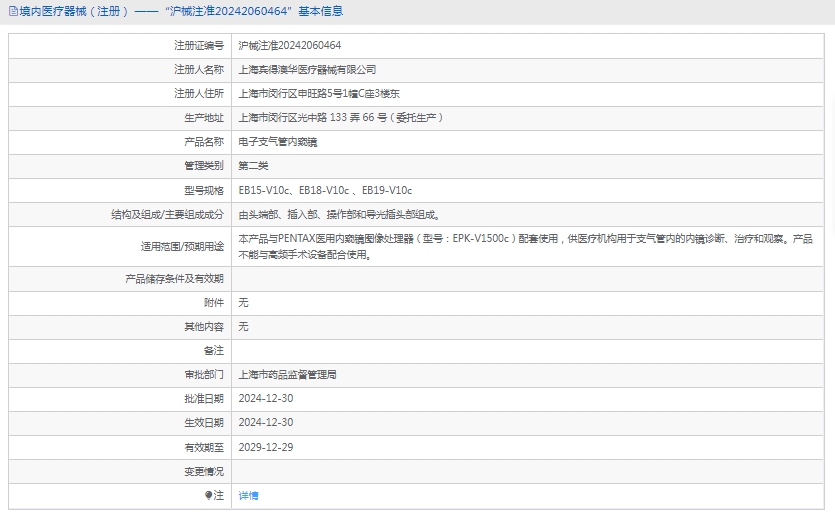 本产品与PENTAX医用内窥镜图像处理器(型号:EPK-V1500c)配套使用,供医疗机构用于支气管内的内镜诊断、治疗和观察。产品不能与高频手术设备配合使用。
