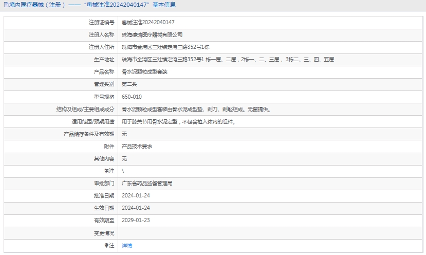 用于膝关节用骨水泥定型,不包含植入体内的组件。