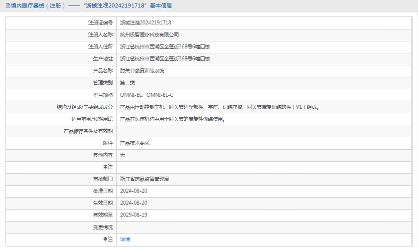 产品在医疗机构中用于肘关节的康复性训练使用。