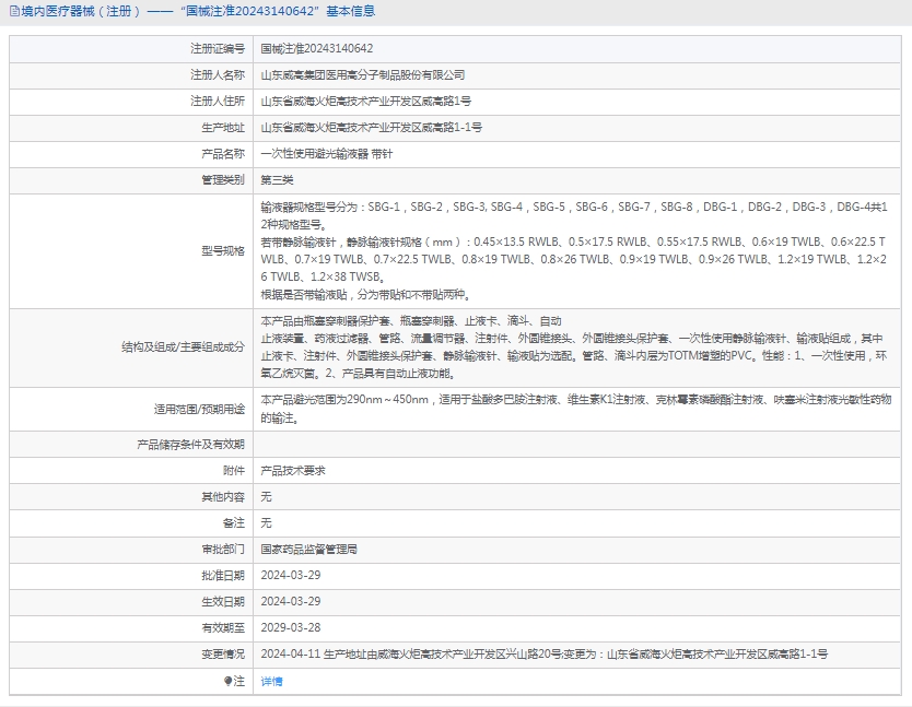 本产品避光范围为290nm~450nm,适用于多巴胺注射液、维生素K1注射液、克林霉素磷酸酯注射液、注射液光敏物的输注。