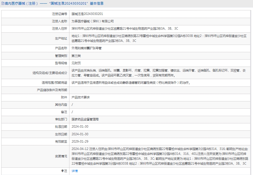 该产品适用于血液透析用自体或合成动静脉造瘘管的闭塞变(钙化病变除外)的治疗。