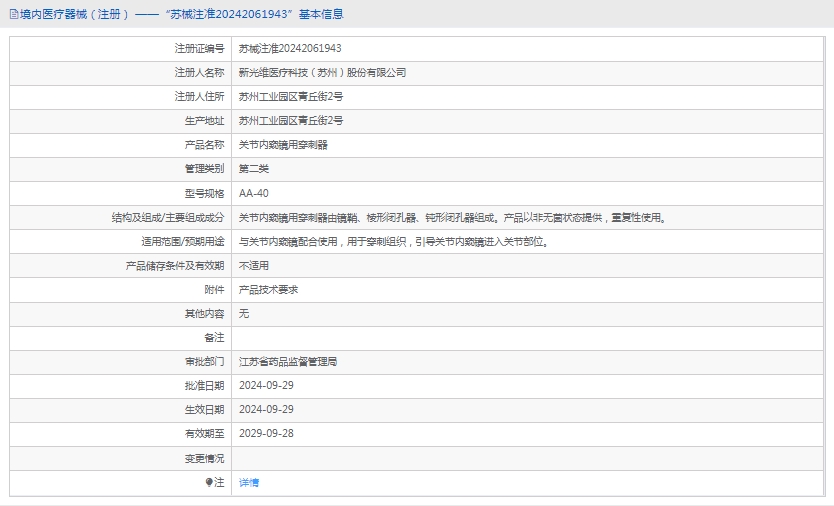 与关节内窥镜配合使用,用于穿刺组织,引导关节内窥镜进入关节部位。