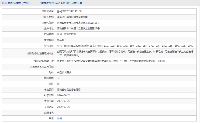 批准文号:豫械注准20242140188