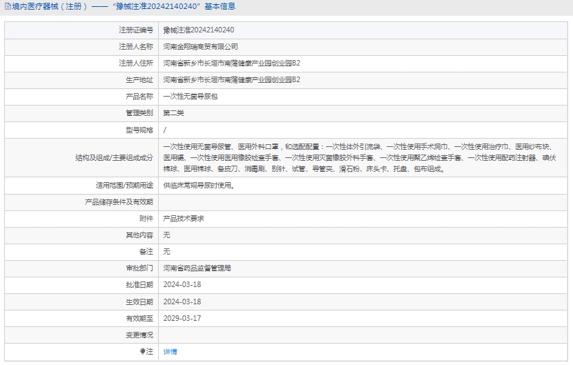 一次性使用无菌导尿管、医用外科口罩,和选配配置:一次性体外引流袋、一次性使用、一次性使用治疗巾、医用纱布块、医用镊、一次性使用医用橡胶检查手套、一次性使用灭菌橡胶外科手套、一次性使用聚检查手套、一次性使用配药注射器、碘伏棉球、医用棉球、备皮刀、消毒刷、别针、试管、导管夹、滑石粉、床头卡、托盘、包布组成。