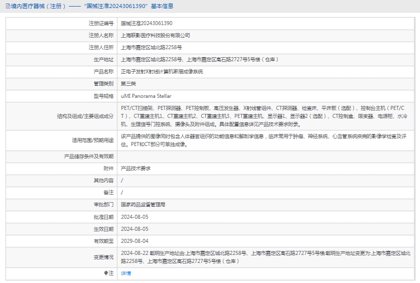 uMI Panorama Stellar正电子发射X射线计算机断层成像系统
