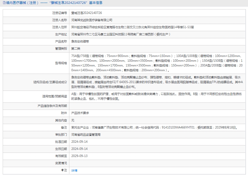 批准文号:豫械注准20242140726