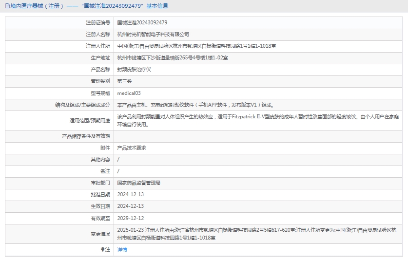 该产品利用射频能量对人体组织产生的热效应,适用于Fitzpatrick II-V型皮肤的成年人暂时性改善面部的轻度皱纹。由个人用户在家庭环境自行使用。