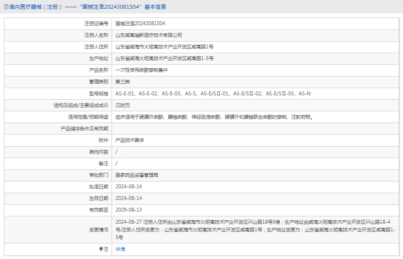 AS-E-03、AS-S 一次性使用麻醉穿刺套件