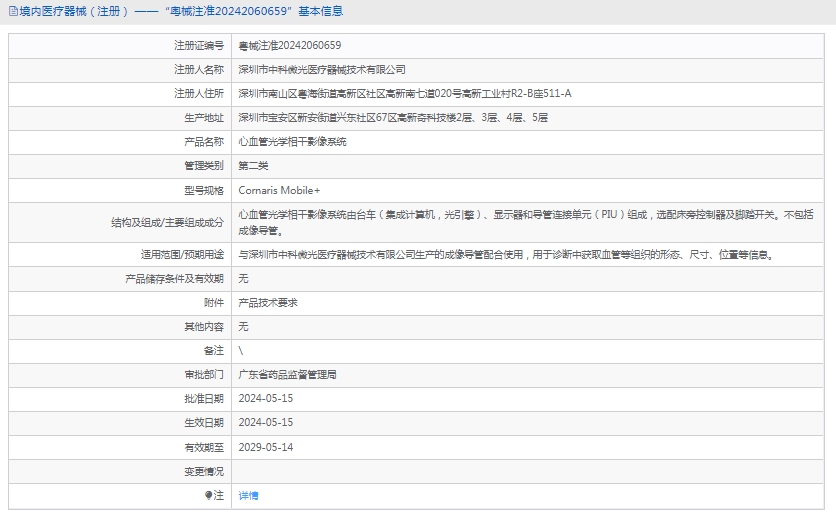 与深圳市中科微光医疗器械技术有限公司生产的成像导管配合使用,用于诊断中获取血管等组织的形态、尺寸、位置等信息。