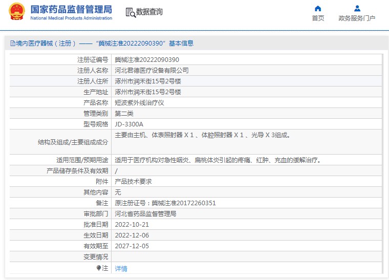批准文号:冀械注准20222090390
