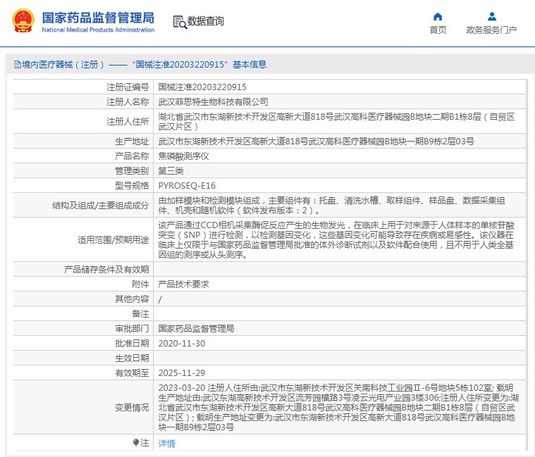该产品通过CCD相机采集酶促反应产生的生物发光,在临床上用于对来源于人体样本的单核苷酸突变(SNP)进行检测,以检测基因变化,这些基因变化可能导致存在疾病或易感性。该仪器在临床上仅限于与国家药品监督管理局批准的体外诊断试剂以及软件配合使用,且不用于人类全基因组的测序或从头测序。