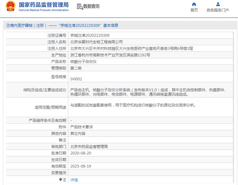 批准文号:京械注准20202220309
