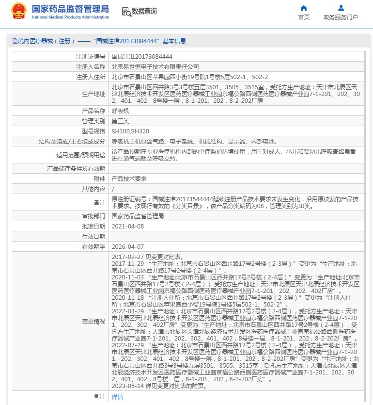 该产品预期在医疗机构内部的重症监护环境使用,用于对成人、小儿和婴幼儿呼吸衰竭患者进行通气辅助及呼吸支持。