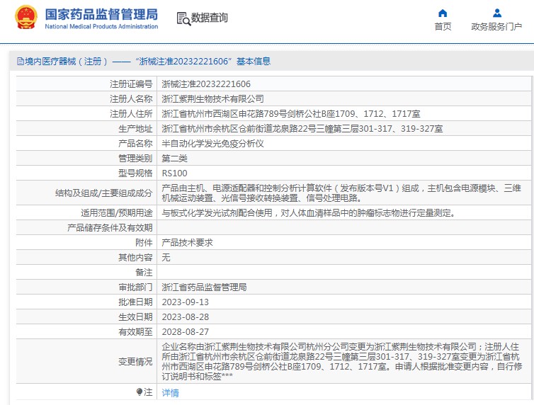 批准文号:浙械注准20232221606