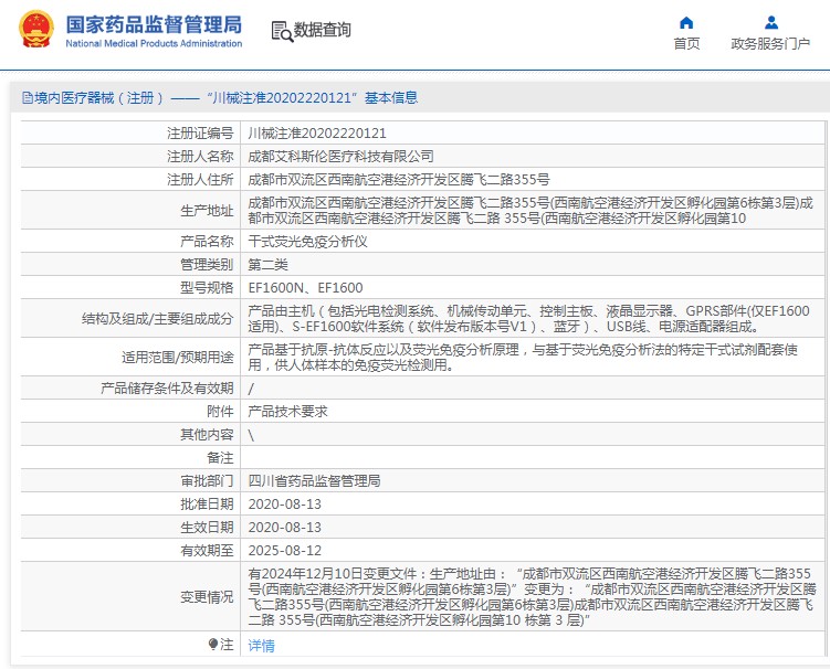 批准文号:川械注准20202220121