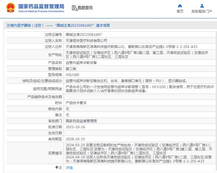 产品与本公司的一次性使用血管内超声诊断导管(型号:HCU100)配合使用,用于在医疗机构中需要进行冠状动脉介入治疗患者的冠状动脉超声成像。