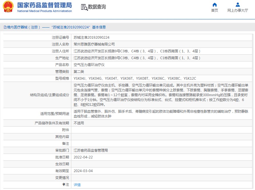 批准文号:苏械注准20192090224