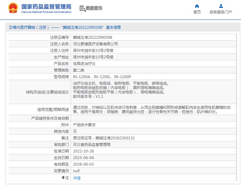 批准文号:冀械注准20182260132