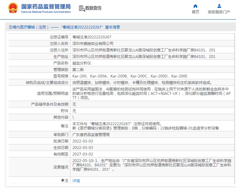 该产品采用凝固法,与配套的检测试剂共同使用,在临床上用于对来源于人体的新鲜全血样本中的被分析物进行定量检测,包括活化凝血时间(ACT+和ACT-LR),活化部分凝血激酶时间(APTT)项目。