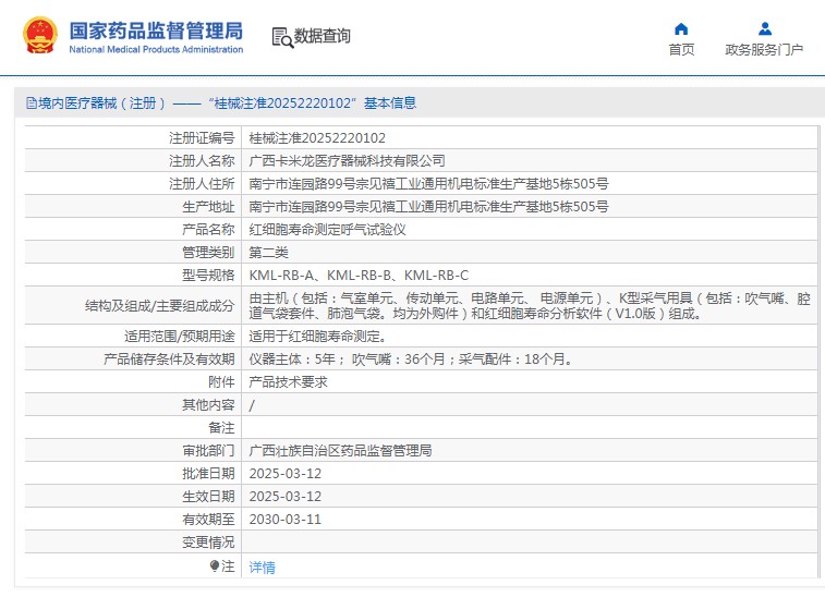由主机(包括:气室单元、传动单元、电路单元、 电源单元)、K型采气用具(包括:吹气嘴、腔道气袋套件、肺泡气袋。均为外购件)和红细胞寿命分析软件(V1.0版)组成。