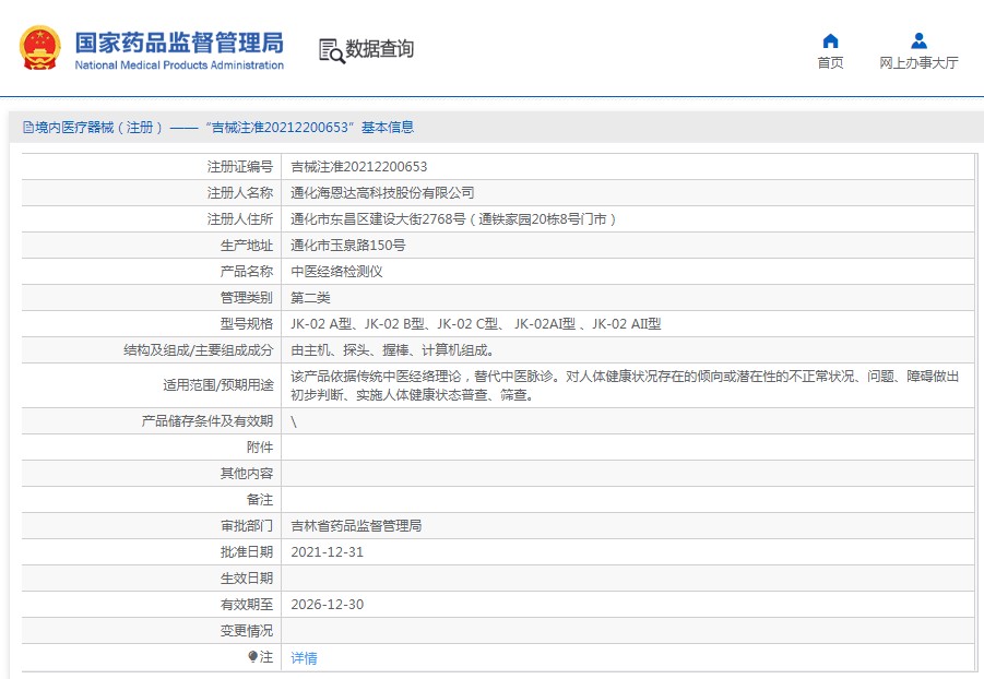 该产品依据传统中医经络理论,替代中医脉诊。对人体健康状况存在的倾向或潜在性的不正常状况、问题、障碍做出初步判断、实施人体健康状态普查、筛查。