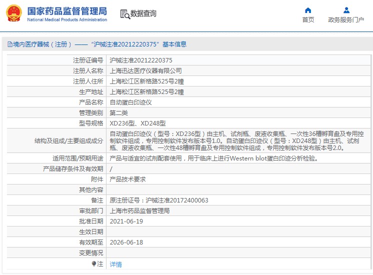 自动蛋白印迹仪(型号:XD236型)由主机、试剂瓶、废液收集瓶、一次性36槽孵育盘及专用控制软件组成,专用控制软件发布版本号1.0。自动蛋白印迹仪(型号:XD248型)由主机、试剂瓶、废液收集瓶、一次性48槽孵育盘及专用控制软件组成,专用控制软件发布版本号2.0。