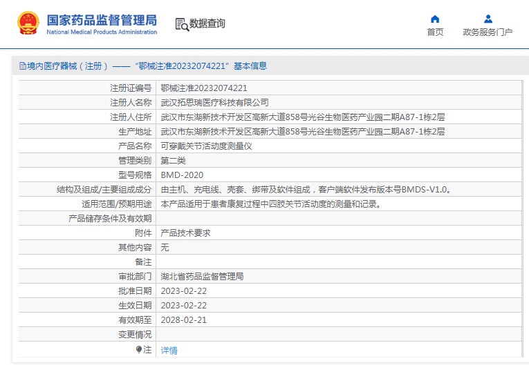 本产品适用于患者康复过程中四肢关节活动度的测量和记录。