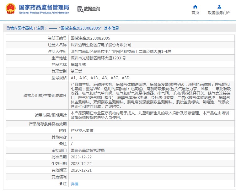 批准文号:国械注准20233082005