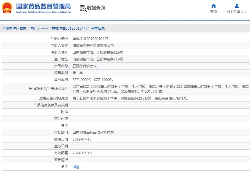批准文号:鲁械注准20192010447