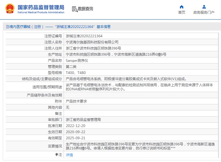 该产品基于毛细管电泳法技术,与配套的检测试剂共同使用,在临床上用于测定来源于人体样本的DNA或RNA核苷酸序列和片段大小。