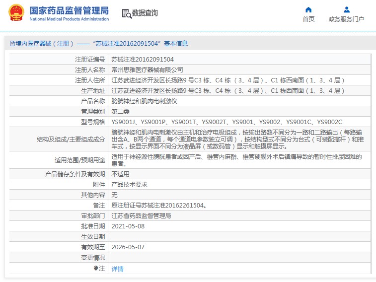 批准文号:苏械注准20162091504