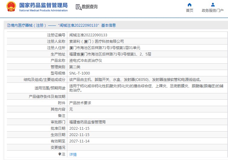 批准文号:闽械注准20222090133