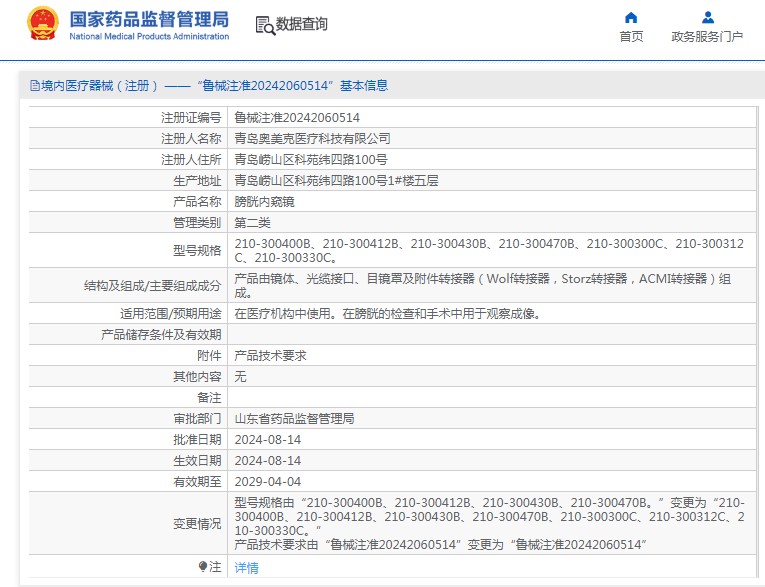 产品由镜体、光缆接口、目镜罩及附件转接器(Wolf转接器,Storz转接器,ACMI转接器)组成。