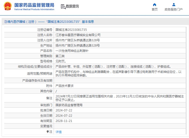 产品在医疗机构中,与神经丛刺激器配合,在超声影像引导下通过电刺激用于术前神经定位,以执行外周神经阻滞麻醉。