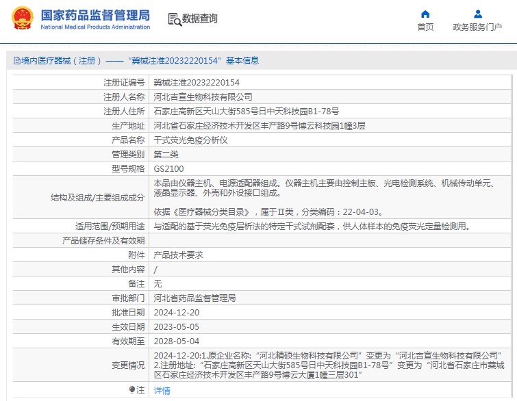 批准文号:冀械注准20232220154