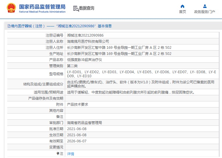 批准文号:湘械注准20212090986