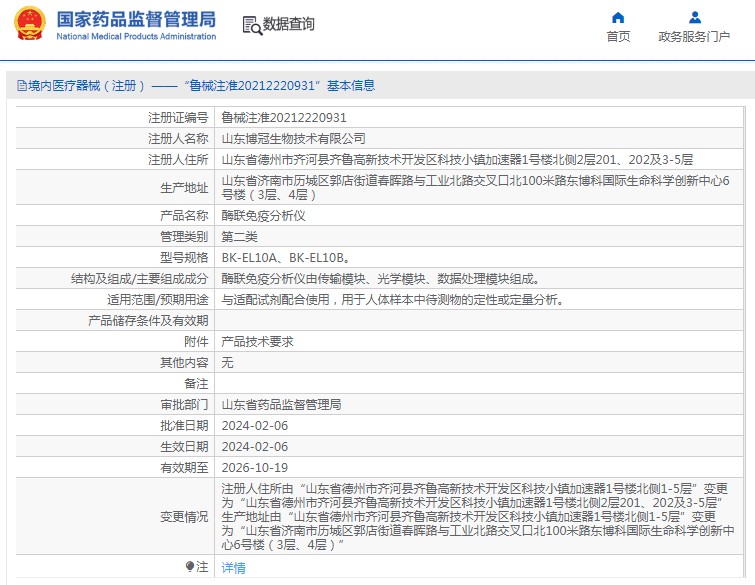 批准文号:鲁械注准20212220931