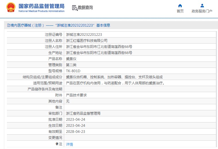 批准文号:浙械注准20232201223