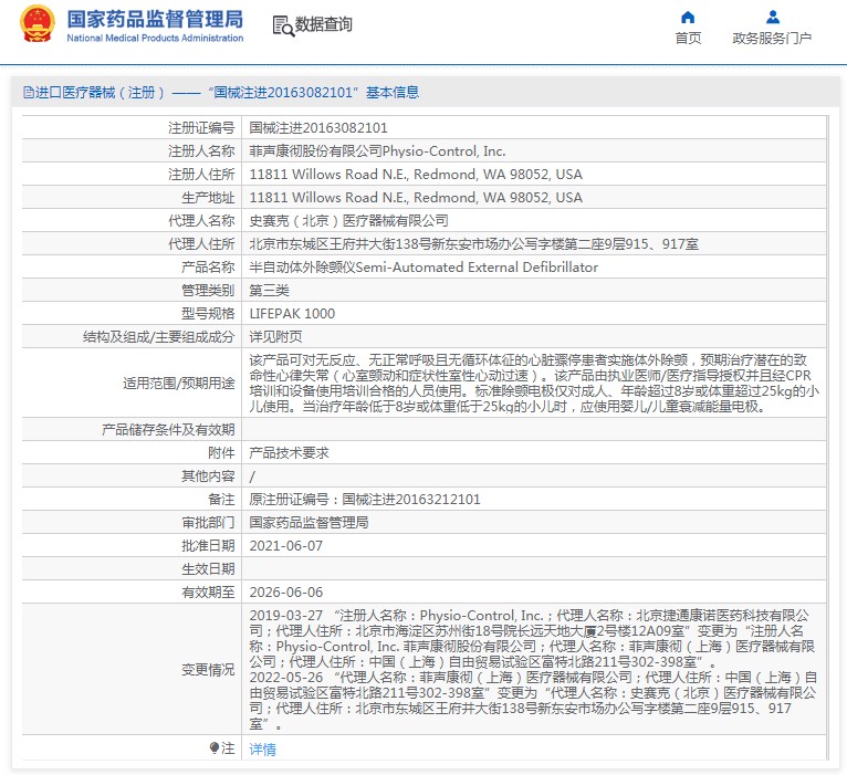 该产品可对无反应、无正常呼吸且无循环体征的心脏骤停患者实施体外除颤,预期治疗潜在的致命性心律失常(心室颤动和症状性室性心动过速)。该产品由执业医师/医疗指导授权并且经CPR培训和设备使用培训合格的人员使用。标准仅对成人、年龄超过8岁或体重超过25kg的小儿使用。当治疗年龄低于8岁或体重低于25kg的小儿时,应使用婴儿/儿童衰减能量电极。
