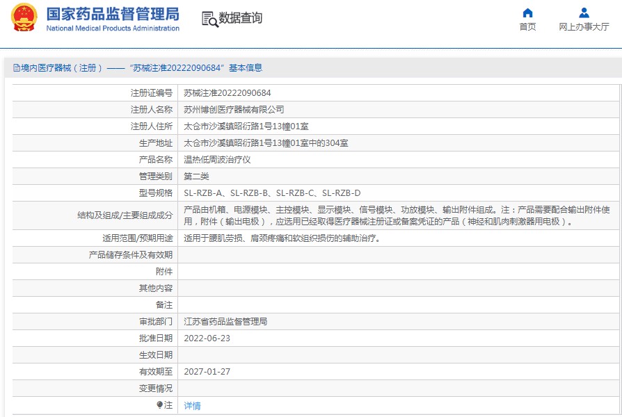 批准文号:苏械注准20222090684