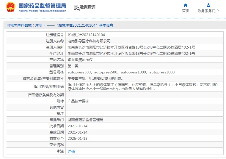 批准文号:湘械注准20212140104