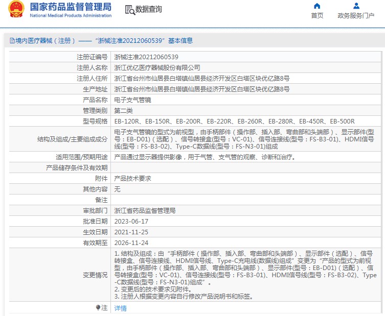 产品通过显示器提供影像,用于气管、支气管的观察、诊断和治疗。