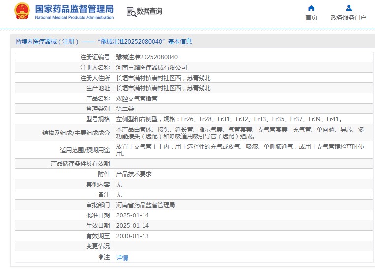 放置于支气管主干内,用于选择性的充气或放气、吸痰、单侧肺通气,或用于支气管镜检查时使用。