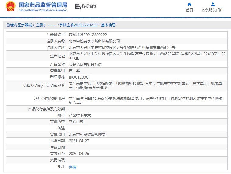 本产品与适配的荧光免疫层析法试剂配合使用,在医疗机构用于体外定量检测人体样本中待测物的含量。