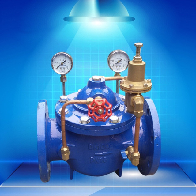 减压阀的出口压力分为出口静压和出口动压。其中:出口静压,是指流经减压阀的流量为零时的出口压力;出口动压,是指减压阀有流量通过时的出口压力。既能减动压,也能减静压,是给水减压阀与减压孔板、节流管、节流阀等减压装置的主要功能区别。比例式减压阀:是依据其阀腔内减压活塞进出口两端感应面积的差异,实现进、出口压力成一定比例关系的减压阀,依据进口压力设定出口压力。可调式减压阀:是根据水力差动控制原理或水力先导控制(由减压先导阀控制主阀)原理,以出口压力的设定值为准,自动调节阀瓣的开启度和流量,实现出口压力的减压和稳定,并与进口压力的关联度较小,可通过弹簧调节装置,对减压阀出口压力进行有效调整。 【可调式减压阀简介】可调式减压阀(又名水利控制阀)就是水压控制的阀门,水力控制阀由一个主阀及其附设的导管﹑导阀﹑针阀﹑球阀和压力表等组成。根据使用目的﹑功能及场所的不同可演变成遥控浮球阀﹑减压阀﹑缓闭止回阀﹑流量控制阀﹑泄压阀﹑水力电动控制阀、水泵控制阀等。本类阀门在管道中一般应当水平安装。可调式减压阀前要安装过滤器,并应便于排污的要求。可调式减压阀是一种利用水自润式阀体,无须另加机油润滑,如遇主阀内零部件损坏时,请按下列指示进行拆卸。